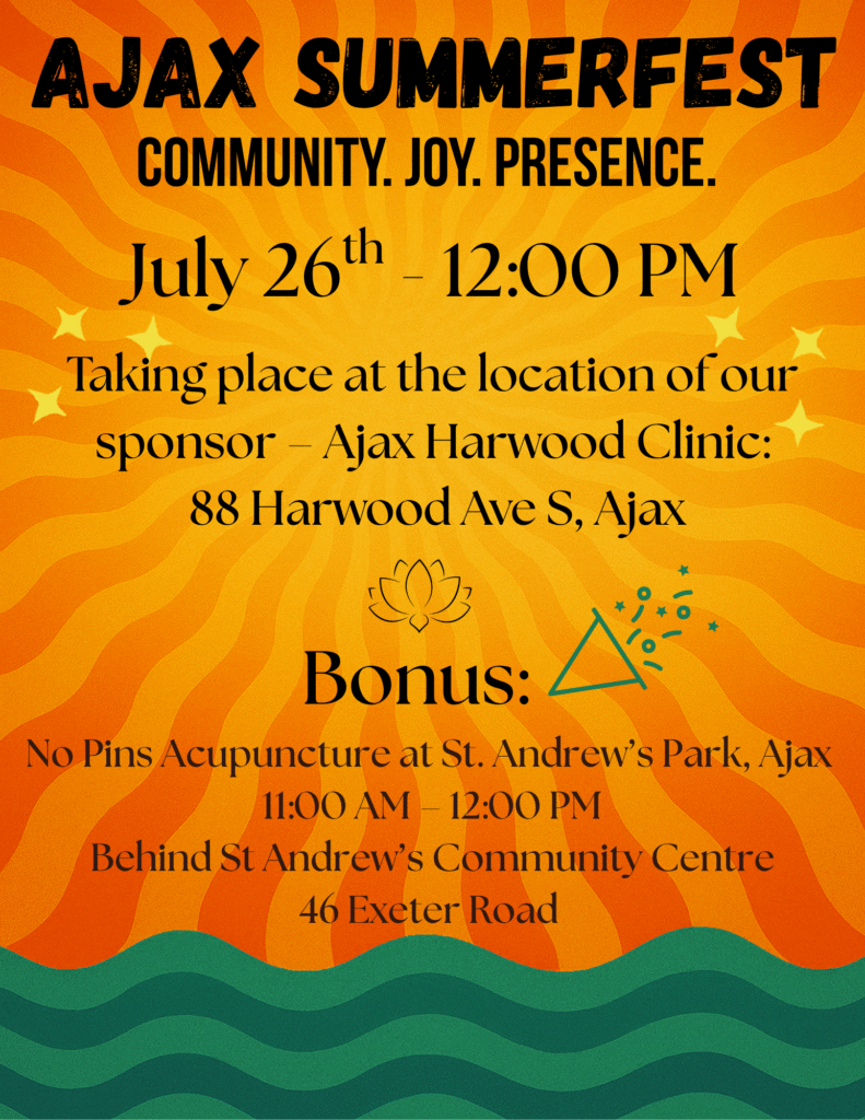 Poster designed to promote acupuncture services for a specific event outside of Ajax.