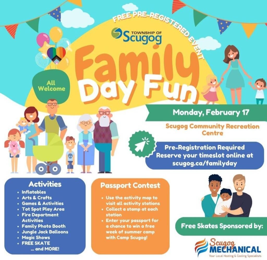 Instagram post promotion for The Family Day Fun program at the Scugog Community Recreation Center.